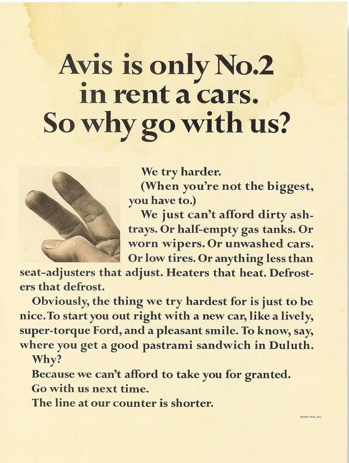 Esempio: Avis, nel ’62, ammise di essere seconda.
